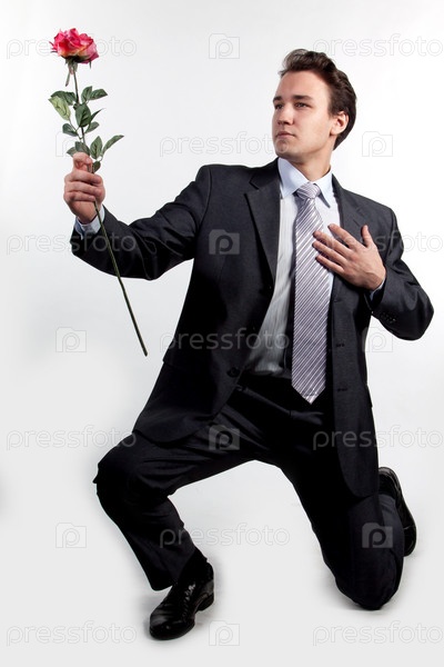 Бизнесмен с цветком на белом фоне