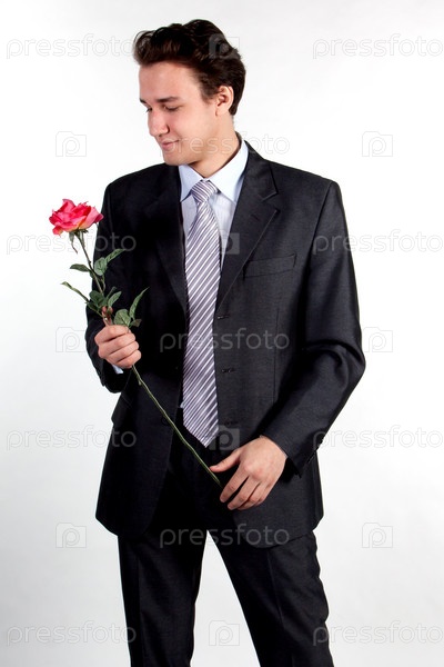 Бизнесмен с цветком на белом фоне