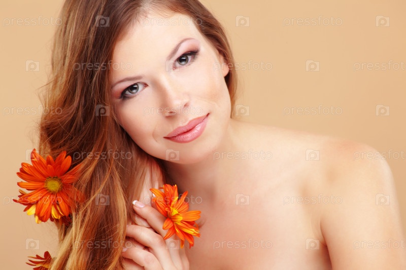 Молодая красивая женщина с цветами в волосах