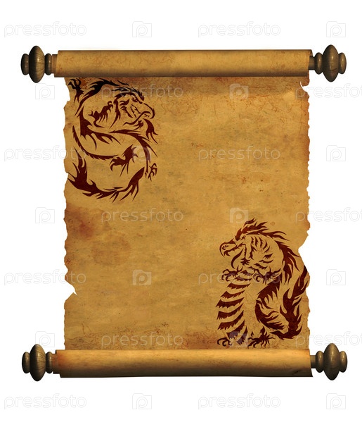 Лист пергамента с изображением драконов