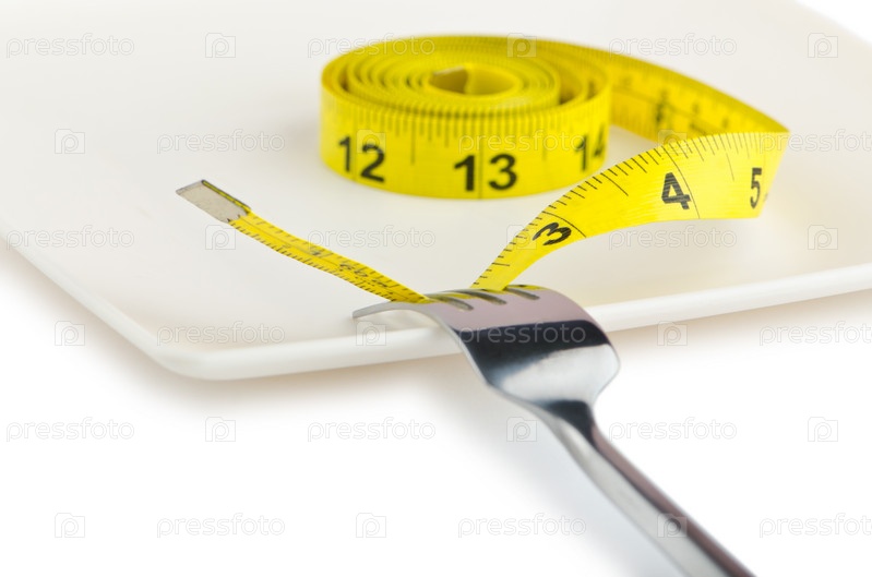 Диета. Вилка, тарелка и измерительная лента