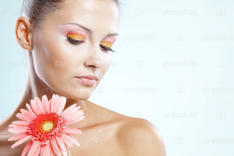Красивая девушка со свежим макияжем и розовым цветком