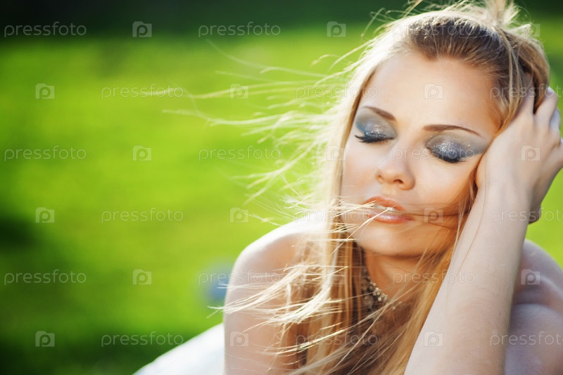 Портрет невесты на фоне зеленой травы