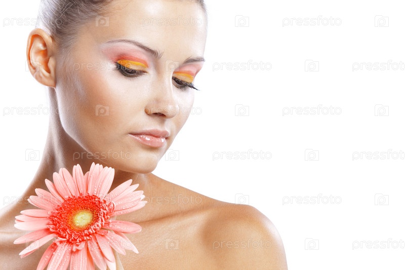 Красивая девушка со свежим макияжем и розовым цветком