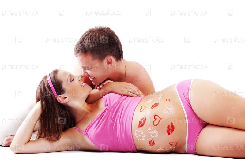 Семейная пара, ожидающая младенца, на белом фоне