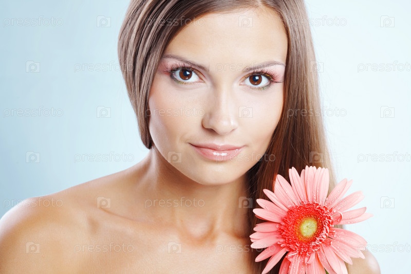Красивая девушка со свежим макияжем и розовым цветком