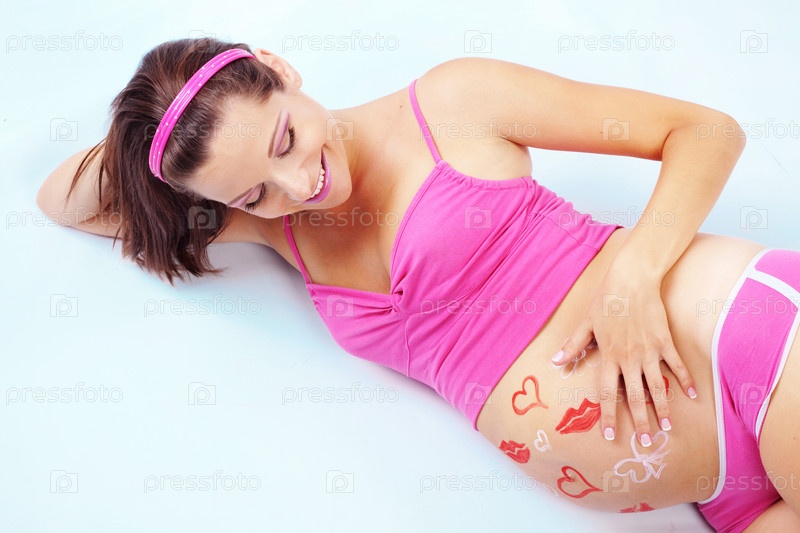 Счастливая беременная женщина с изображением на животе