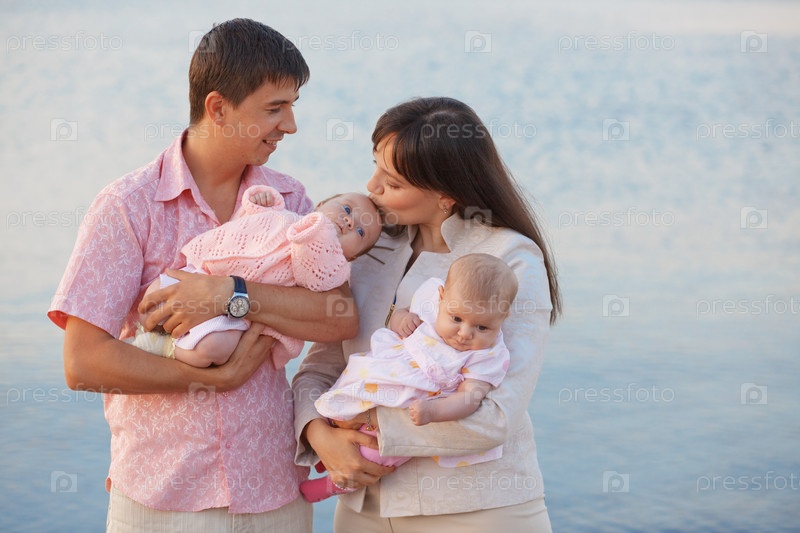 Счастливая семья на морском побережье