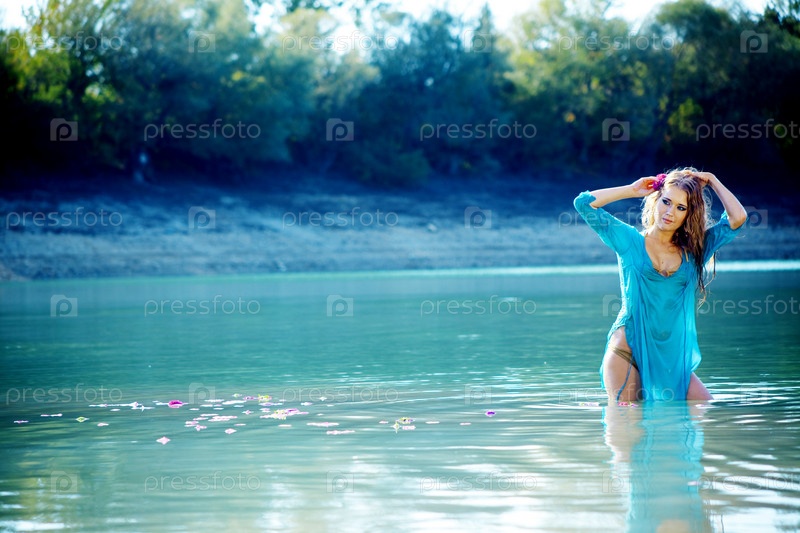 Портрет молодой красивой женщины в озере