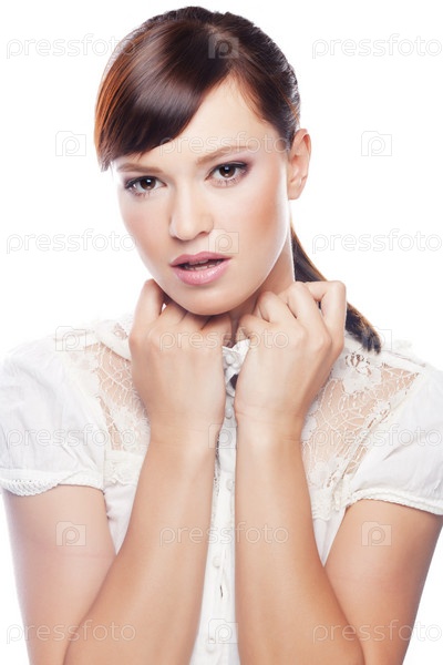 Портрет красивой девушки на белом фоне