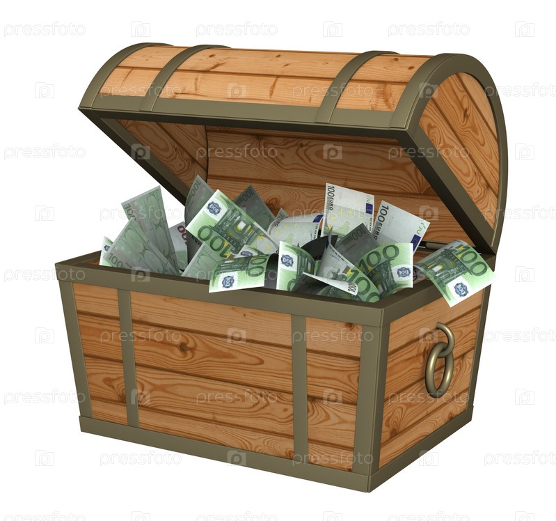 Ящик, наполненный банкнотами евро
