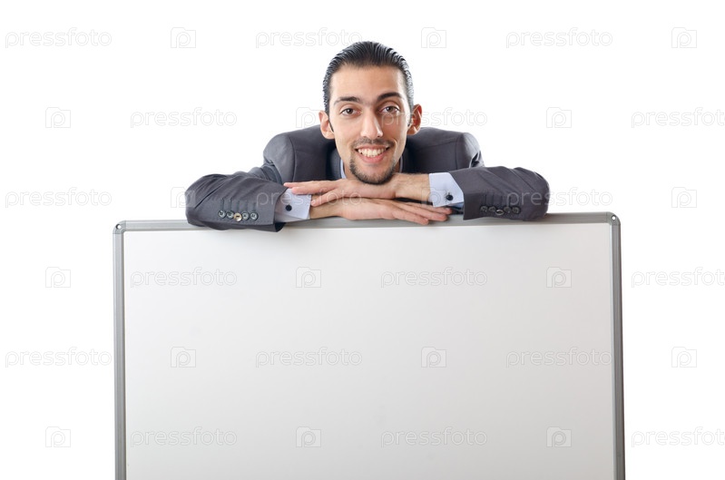 Молодой предприниматель с серой доской