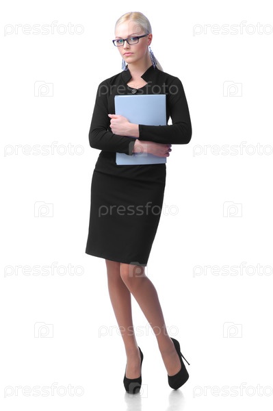 Деловая девушка с папкой в руках,изолированная на белом фоне