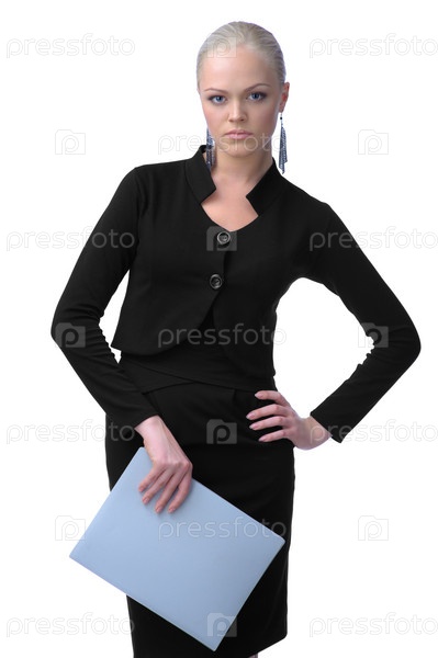 Деловая девушка с папкой в руках,изолированная на белом фоне