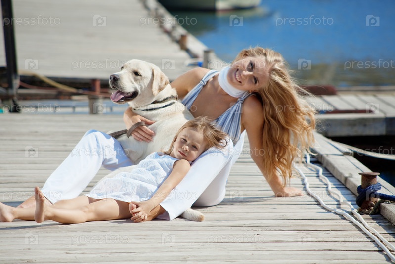 Мать с ребенком и собакой на причале