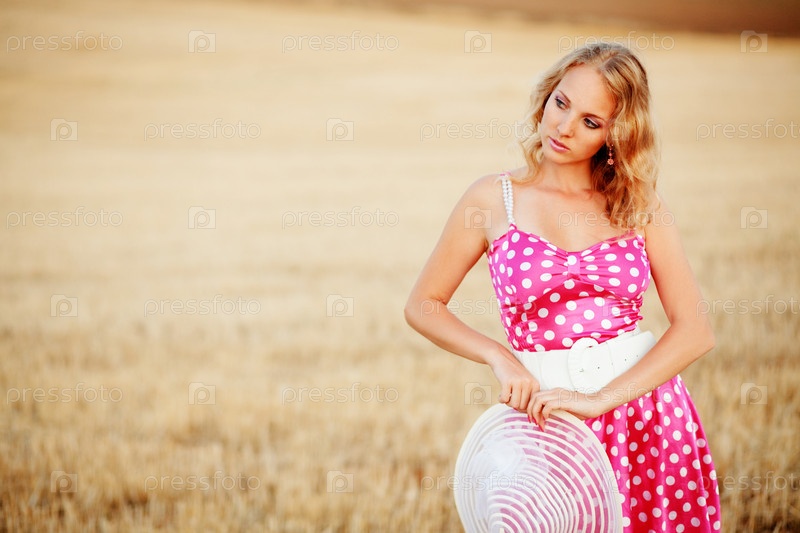 Девушка в летнем платье на поле