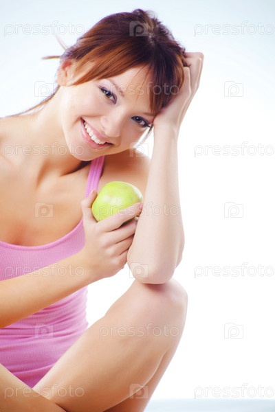 Красивая девушка с зелеными яблоком