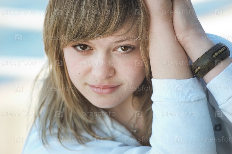 Портрет грустной девушки в белом с руками у лица