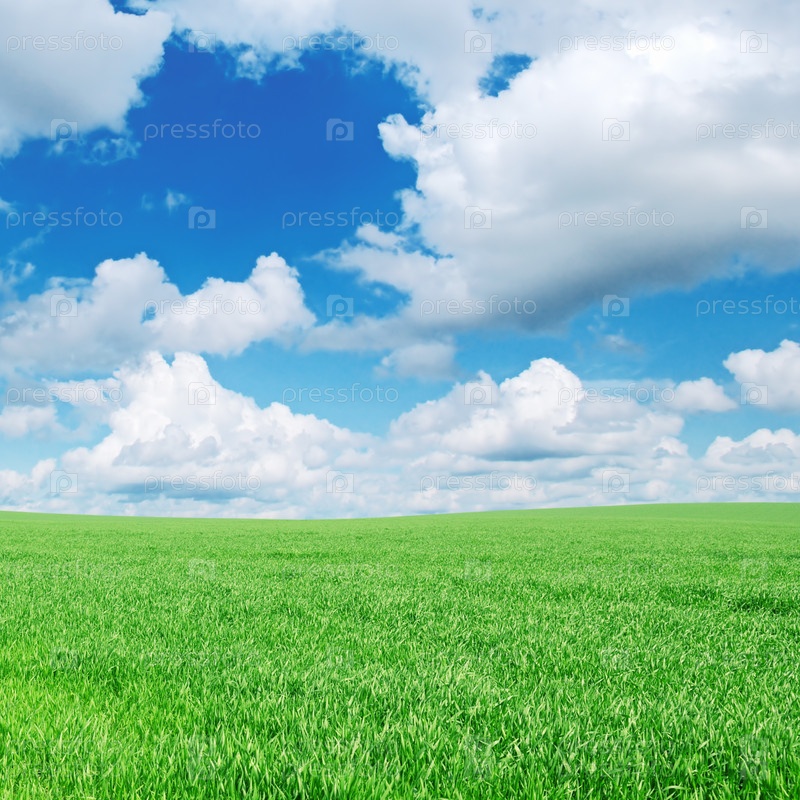 Зеленое поле и голубое облачное небо