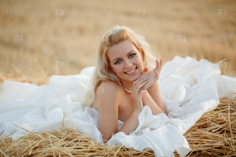 Невеста лежит на стоге сена