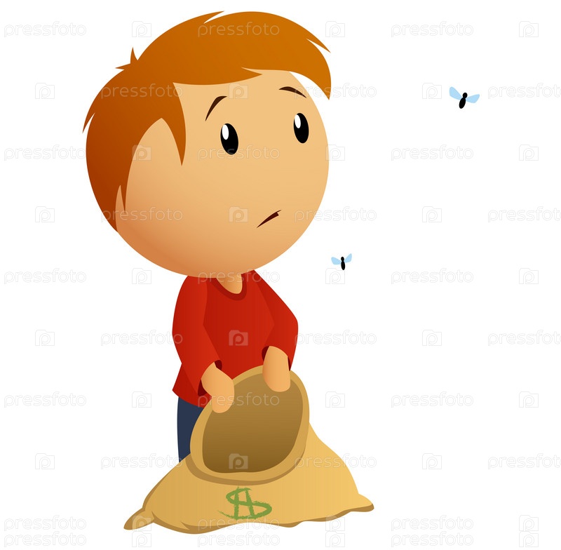 Удивленный мужчина с пустым мешком