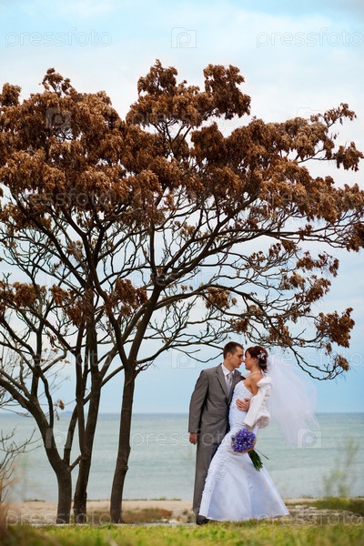 Жених и невеста на открытом воздухе