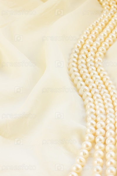 Жемчужные бусы на белом шелке