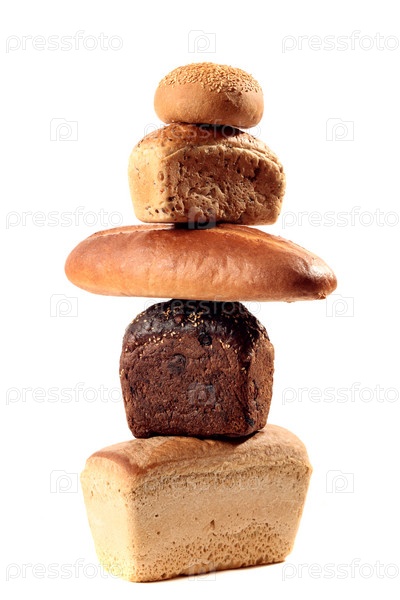 Много разного хлеба на белом фоне