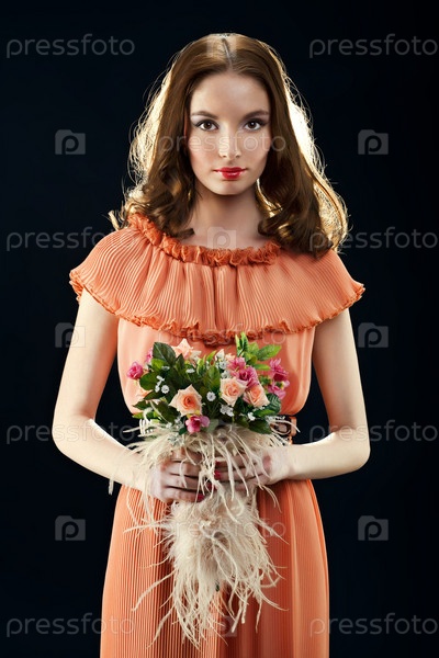 Красивая девушка с букетом цветов