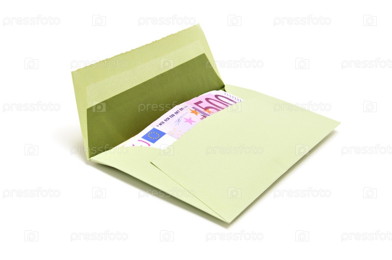 Деньги в конверте, изолированные на белом фоне