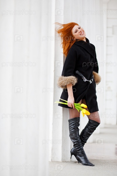 Портрет молодой девушки с желтыми тюльпанами
