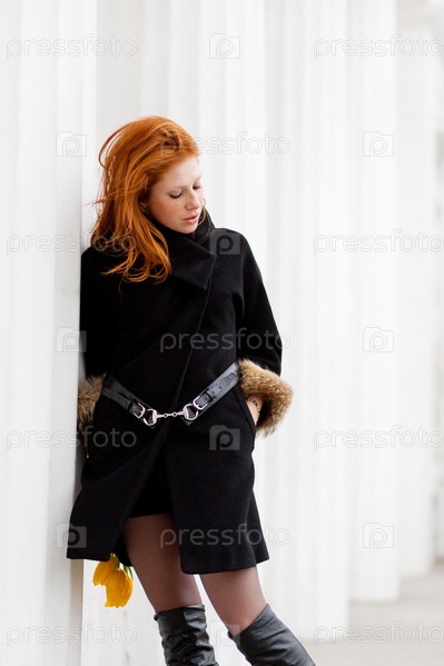 Портрет молодой девушки с желтыми тюльпанами
