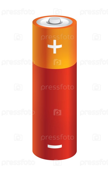 Красно-оранжевая батарейка с полюсами, изолированная на белом фоне