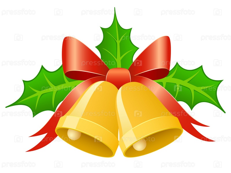 Рождественские колокольчики с остролистом на белом фоне