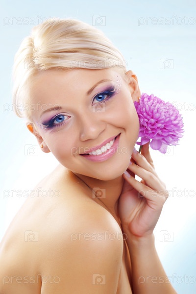 Девушка с цветком на белом фоне