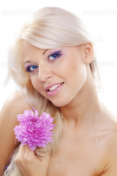 Девушка с цветком на белом фоне