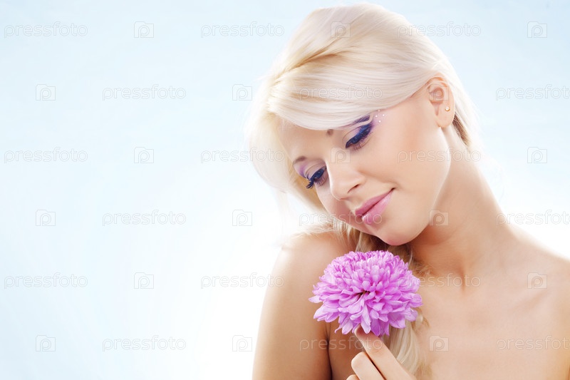 Девушка с цветком на белом фоне