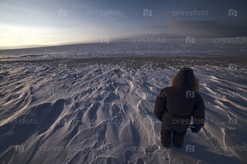 Мальчик гуляет на улице,зимой