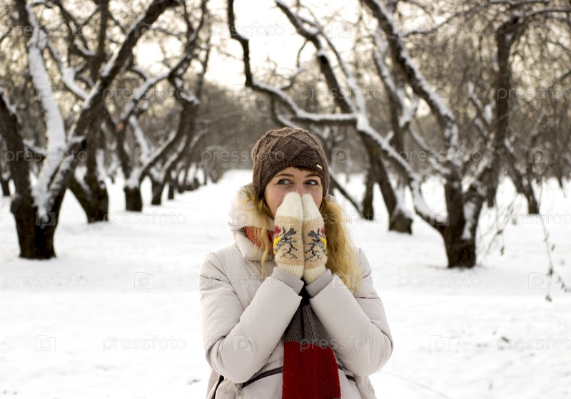 Молодая красивая девушка в зимнем лесу