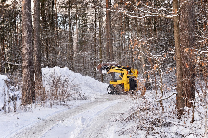 Трактор очищает снег