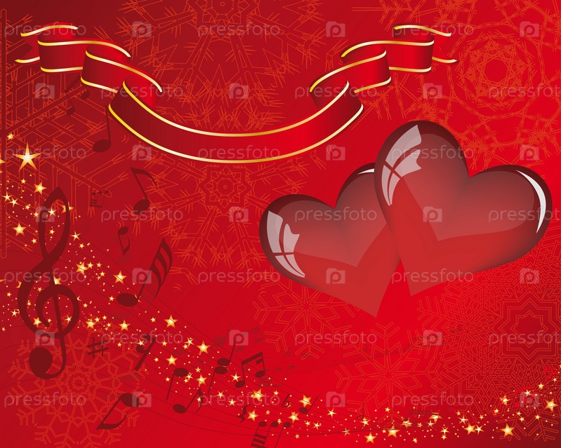 Красные сердца, нотный стан волной, лента и зведы