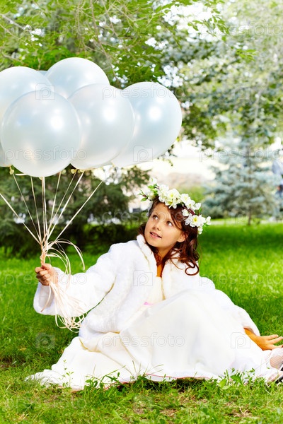 Нарядная девочка с воздушными шарами на открытом воздухе