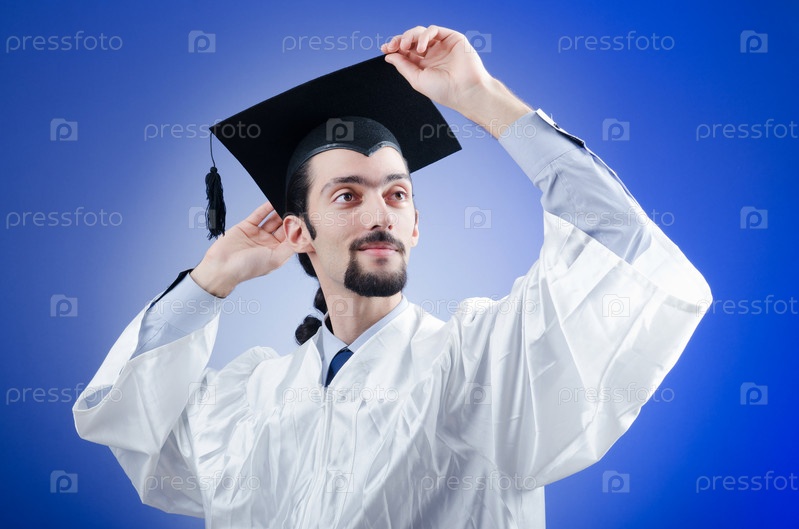Молодой выпускник на синем фоне