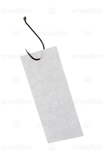 Изображение серого прямоугольного листа бумаги, пробитого рыболовным крючком