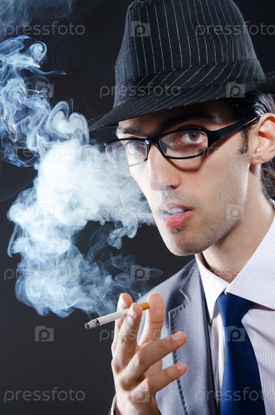 Молодой человек курит сигарету