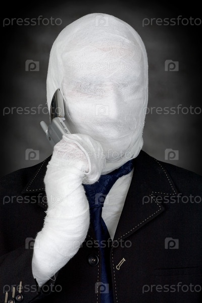 Мумия в костюме говорит по мобильнику
