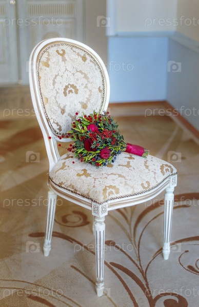 Свадебный букет на стуле