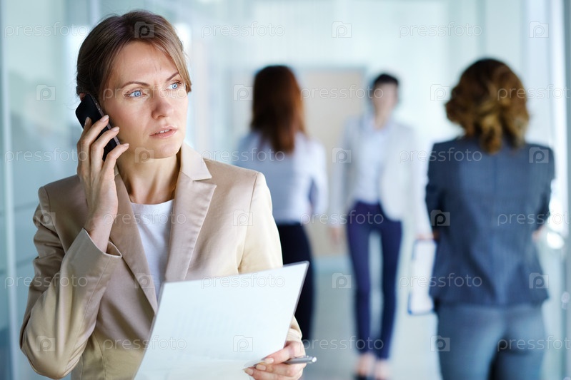 Портрет деловой женщины, разговаривающей по телефону