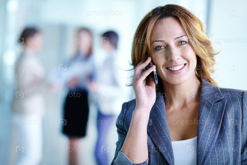 Портрет деловой женщины, разговаривающей по телефону