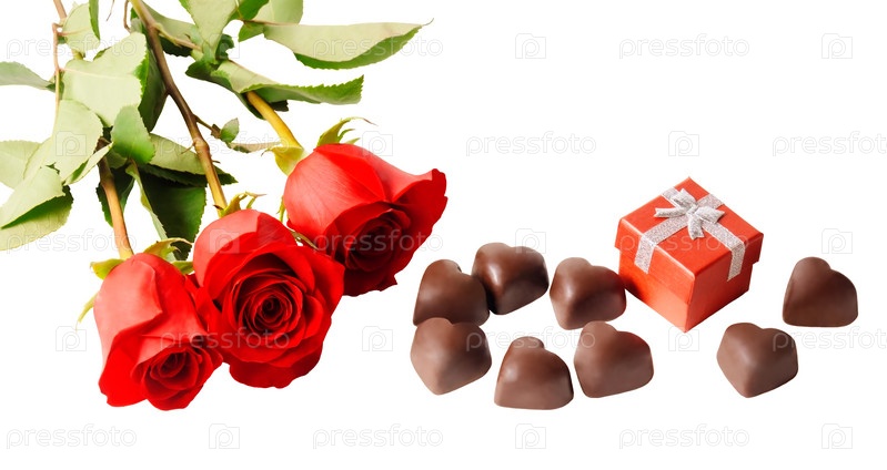 Красные розы и конфеты